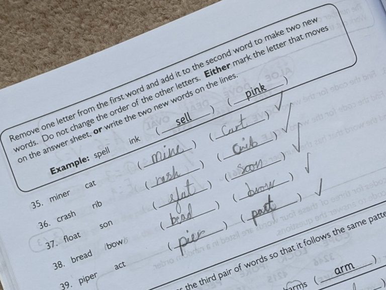 Verbal reasoning with test your child's ability to solve problems using language, logic, and pattern recognition. Questions involve a variety of puzzles that require strong vocabulary, critical thinking and an understanding of word relationships. Common question types include finding synonyms, solving word codes, identifying hidden words, and completing letter or number sequences.