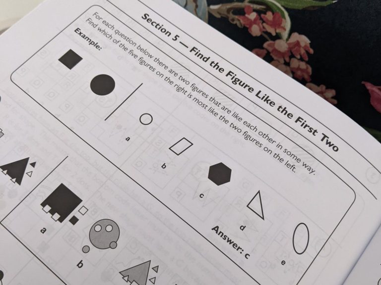 Non-verbal reasoning tests your child's ability to solve problems using shapes, diagrams and symbols instead of words. It assesses skills like identifying patterns, analysing visual information, solving problems logically, and creative thinking. Questions may include tasks like finding the 'odd one out', completing a sequence, cracking codes, rotating shapes or comparing 3D shapes with nets.